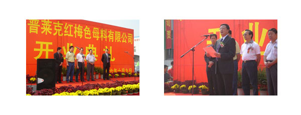 10月9日,常州市紅梅塑料色母料有限公司舉行了新廠 — 常州普萊克紅梅色母料有限公司盛大的開業(yè)慶典儀式,參加這次活動(dòng)的480多名來賓中主要包括公司的重點(diǎn)業(yè)務(wù)單位、供應(yīng)商以及部分協(xié)作單位的有關(guān)人員,其中包括—些國外重要的合作伙伴等,活動(dòng)期間公司還為長期合作的36個(gè)分銷商舉行了授牌儀式。