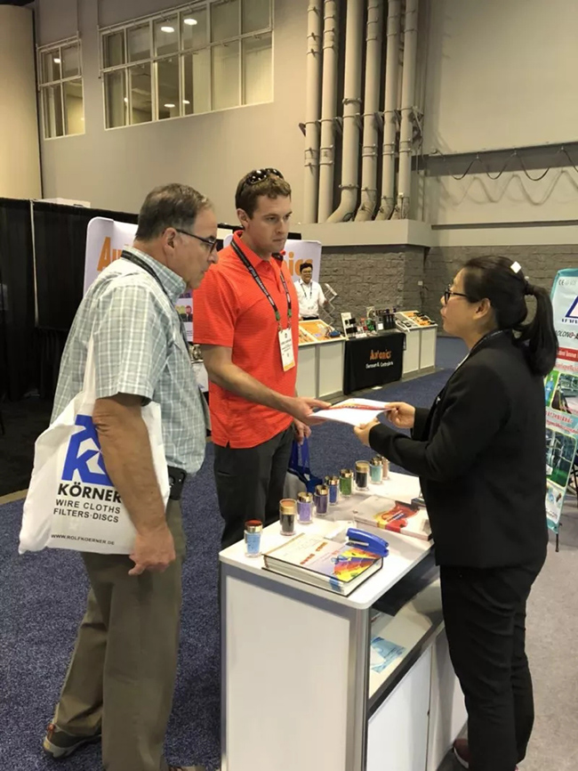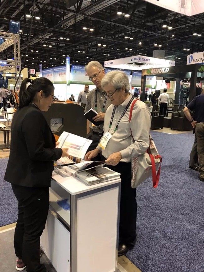 ▲ 專業(yè)熱情的紅梅人,在美國塑料展盡心為客戶解讀產(chǎn)品訊息
